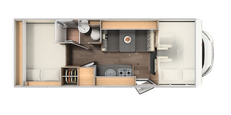 Egal ob zu zweit oder mit der ganzen Familie, mit dem A70 von Sunlight reisen Sie in einem kompakten Wohnmobil mit bis zu 5 Sitz/Schalfplätzen, großem Alkoven, Heckgarage u.v.m.